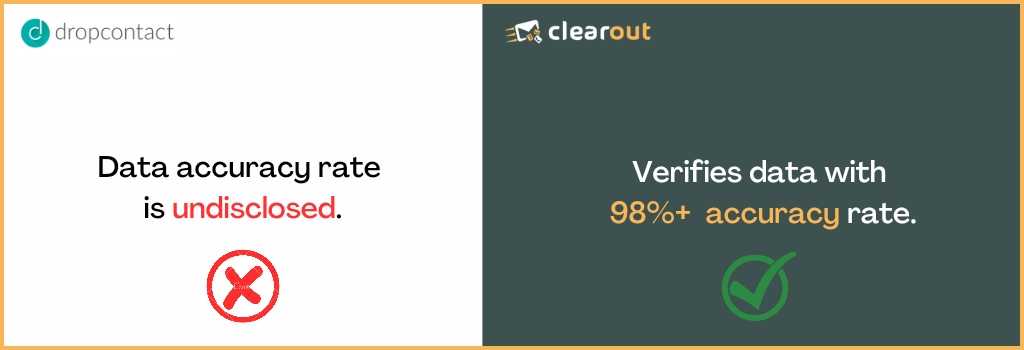Clearout fetches pre-verified data after running through multiple checks with 99% accuracy ensuring better performance from the outreach campaign. Whereas, Dropcontact has not disclosed the accuracy of the data pulled.